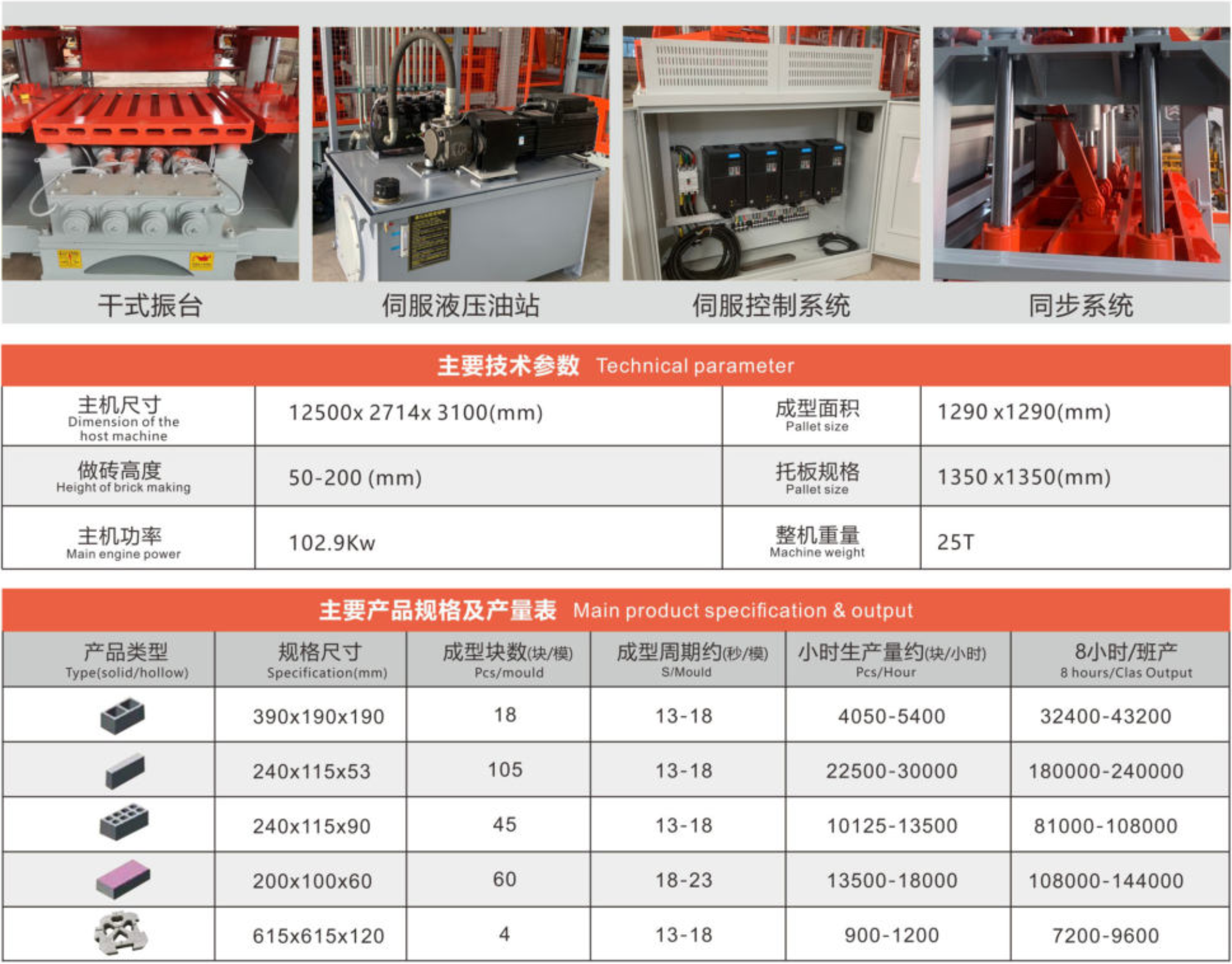 ● 采用國外原版高性能振搗系統(tǒng),振動強勁,成型周期短,產(chǎn)品密實度高。